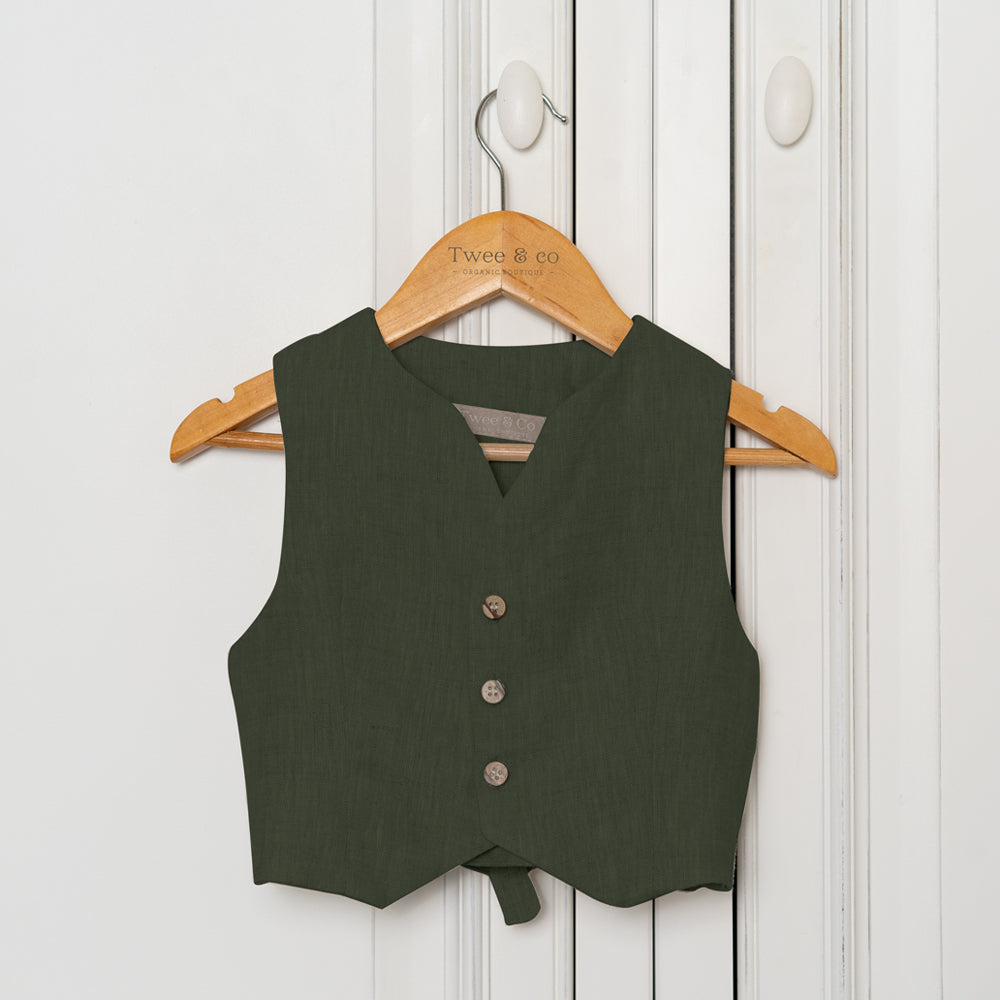 See your little one looking sharp and stylish, while still feeling natural and comfortable in this smartly tailored boys waistcoat -  perfect for your special occasions. Made from natural and breathable organic linen, this garment has been handcrafted with care in New Zealand.