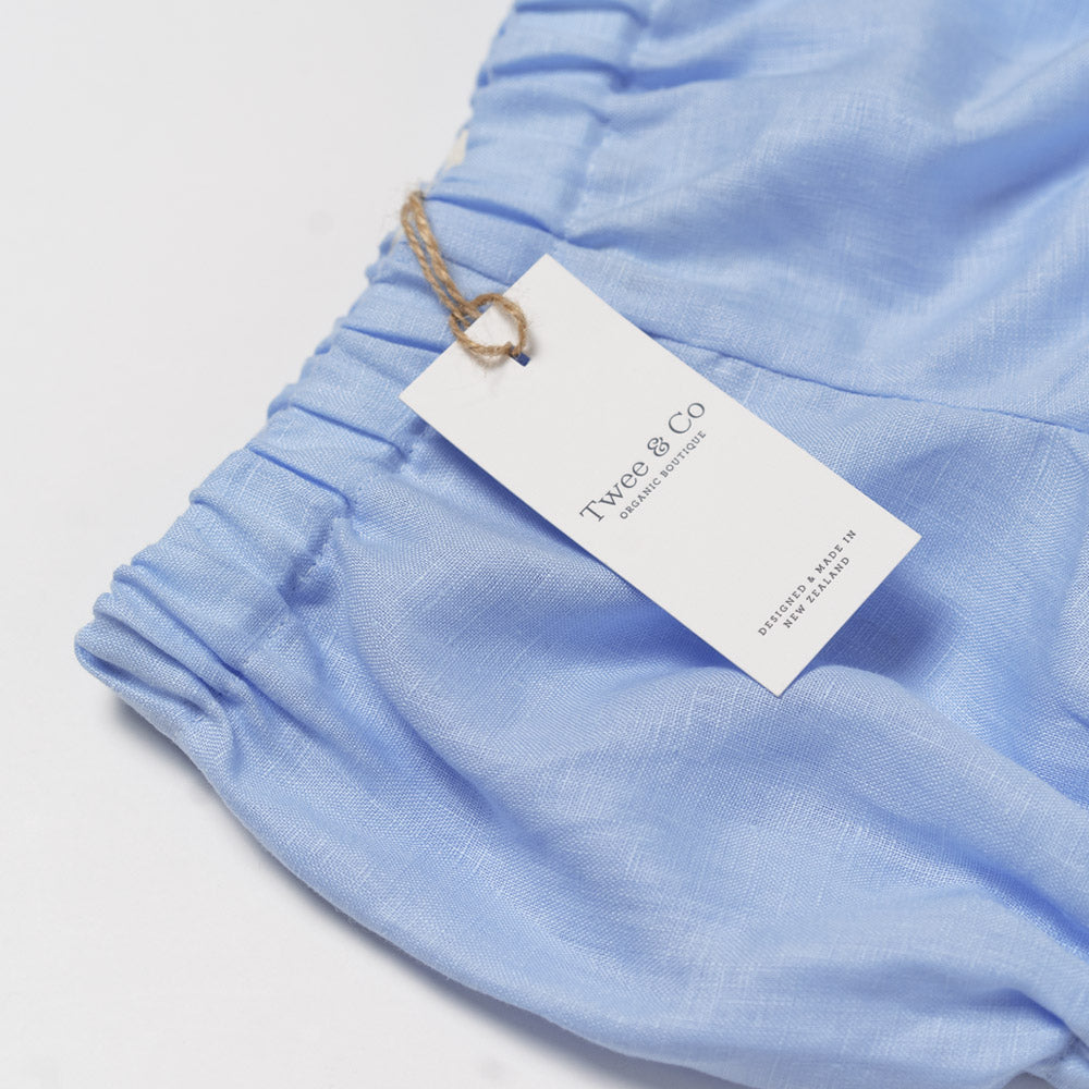 This sweet Baby blue Bloomer is a lovely easy to wear item, elasticated in the waist and legs.