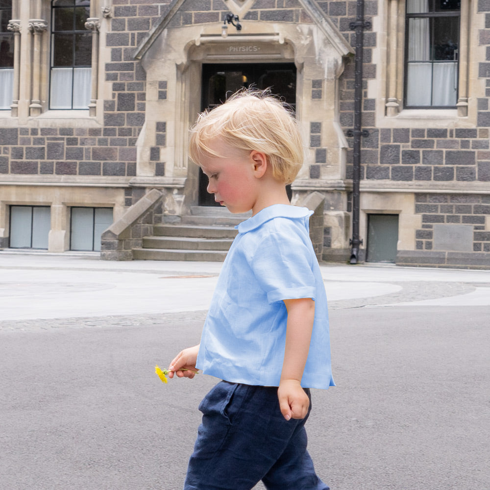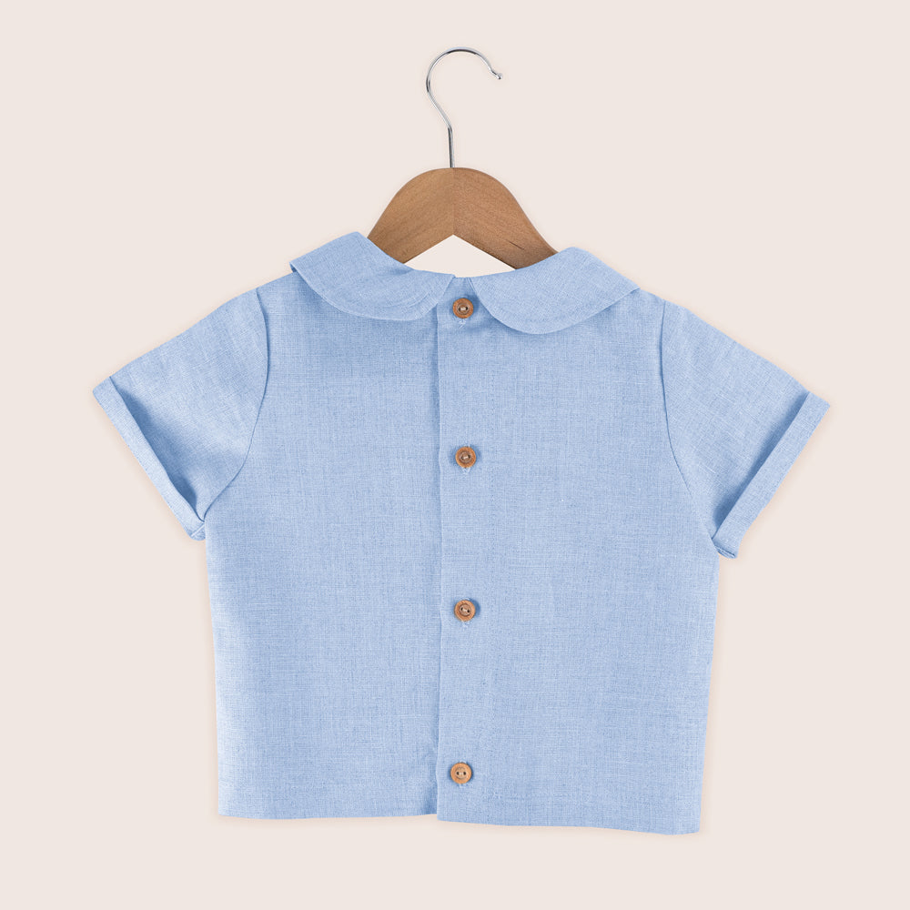 The Pierre Shirt has been handcrafted from a beautifully soft and light organic linen. It features a classic peter pan collar and small wooden buttons that trickle down the back.