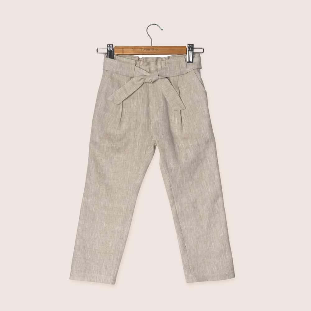These smart little pants have been handcrafted from a beautifully soft organic linen. They have a stretch waist and tie belt. A perfect match to our Wilbur Waistcoat.